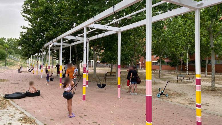 Sin embargo, el pasado viernes 7 de junio, vecinas y vecinos de la AV Alto de San Isidro junto con la AFA del CEIP Lope de Vega construyeron los primeros columpios que ven el parque después de décadas de abandono. Esta sencilla actuación, con menos de 200 euros de presupuesto, ha conseguido revitalizar el aspecto del parque y potenciar su uso divertido y saludable. Durante la actividad, niños y niñas prepararon un mural que refleja cómo les gustaría que fuera su parque.