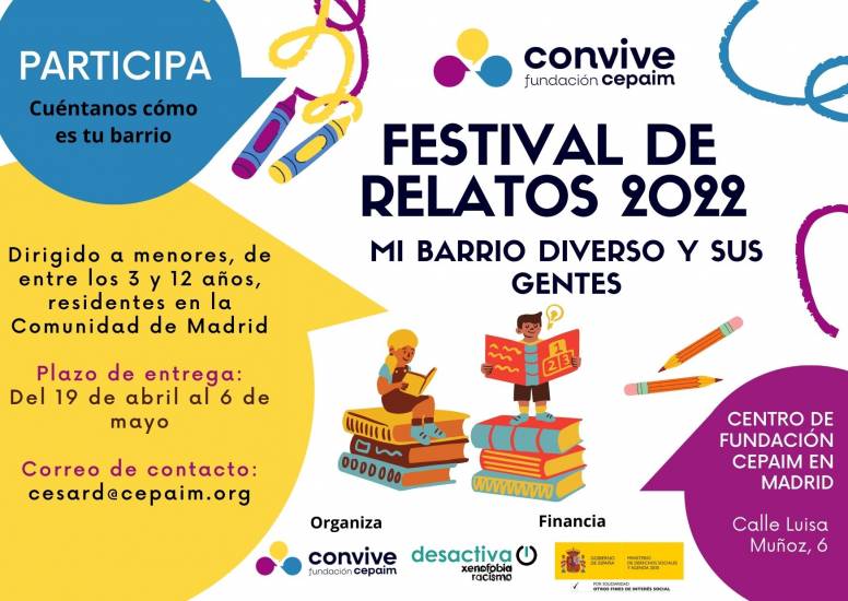 Durante este mes de abril se celebra el Día Internacional del Libro y el próximo mes de mayo tiene lugar el Día Internacional de la Diversidad Cultural para el Diálogo y el Desarrollo, para su conmemoración, la Comisión de Desarrollo Comunitario y Participación Social de la Fundación Cepaim en Madrid, en colaboración con el Programa “Desactivando el Racismo y la Xenofobia”, organiza una actividad de sensibilización sobre las contribuciones positivas de la migración en la comunidad local, a través de un concurso de dibujo y relato en torno a la temática de la diversidad cultural del barrio.