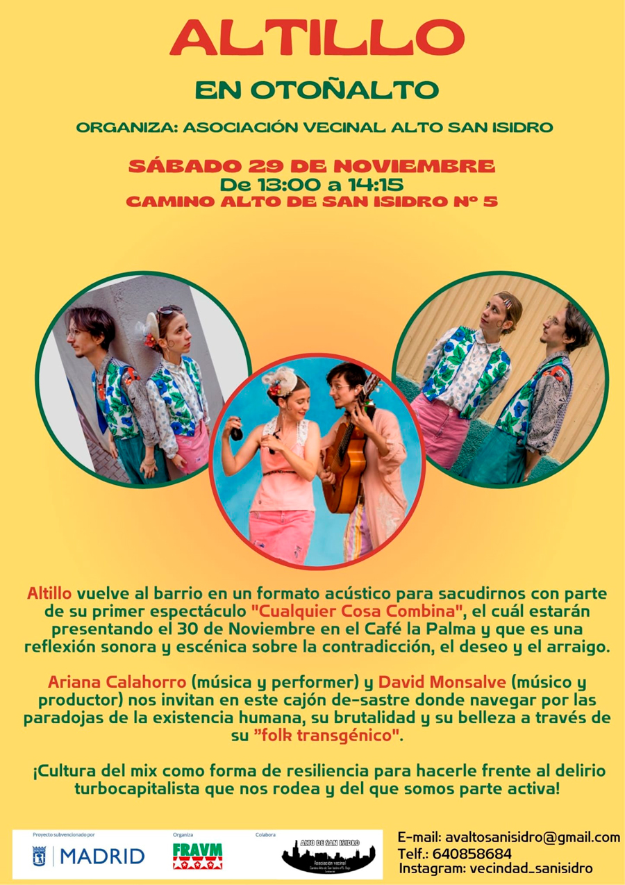 Una mañana con un taller para peques que disfrutarán también del fantástico espectáculo de Fantasy Jazz Circus, y después, actuación de Altillo, que nos regala un acústico, previo a su conciertazo total presentando "Cualquier Cosa Combina" en el Café La Palma.