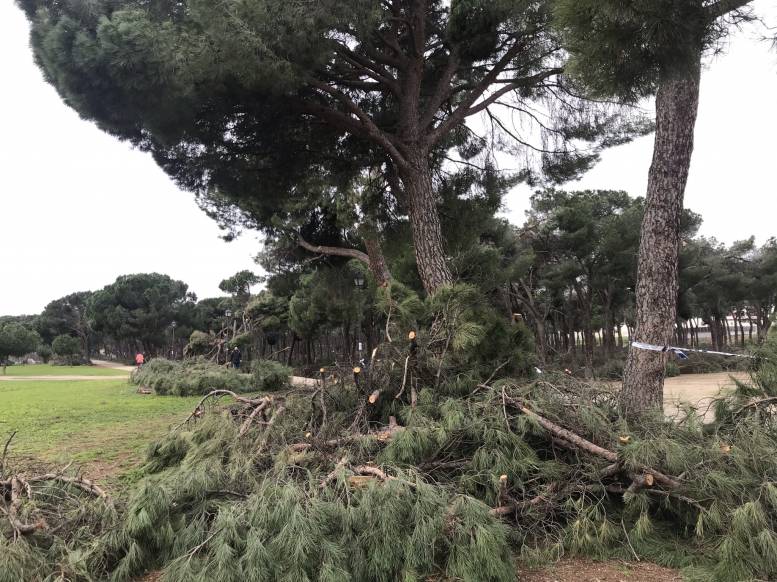 Las primeras estimaciones son la perdida de más de 150.000 arboles de viales y daños en más del 80% de grandes parques (Casa de Campo, El Retiro, Dehesa de la Villa, Quinta de Torre Arias, etc.). Ahora no nos damos cuenta de esta perdida, pero en unas semanas, cuando se retiren todas las ramas y acaben las labores de poda del resto que queda en pie, veremos la triste realidad: árboles mutilados por doquier, sobre todo por la falta de mantenimiento y planificación que durante estos últimos años hemos sufrido en nuestros parques públicos.
