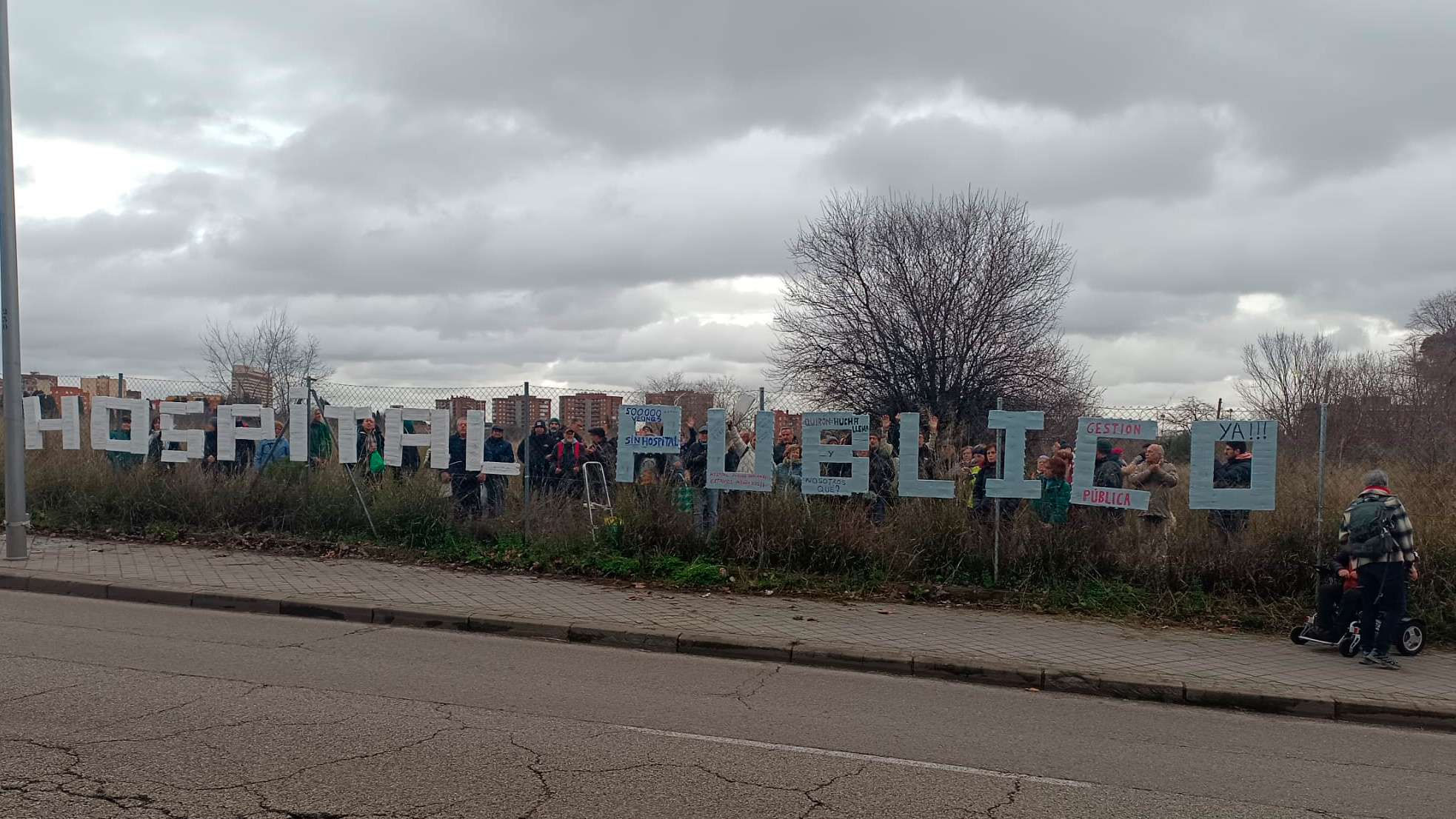 Con esta acción dan la salida a las movilizaciones que se sucederán para reclamar que la Comunidad de Madrid inicie los trabajos para la construcción de un hospital, que exigen sea público y de gestión directa, en la parcela de 40.000 m2 que el plan general tiene reservado para equipamiento sanitario.