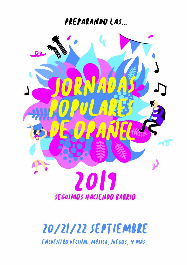 En Opañel estamos preparando las cuartas Jornadas Populares. Como venimos haciendo desde hace cuatro años, la comisión de fiestas de Opañel formada por vecinos de varios colectivos, este año A.C. la Higuera y el Almendro y Scout de San Viator, estamos configurando una programación festiva y lúdica para los días 20, 21 y 22 de septiembre, apoyados por Cervezas Patanel y varios comercios del barrio.