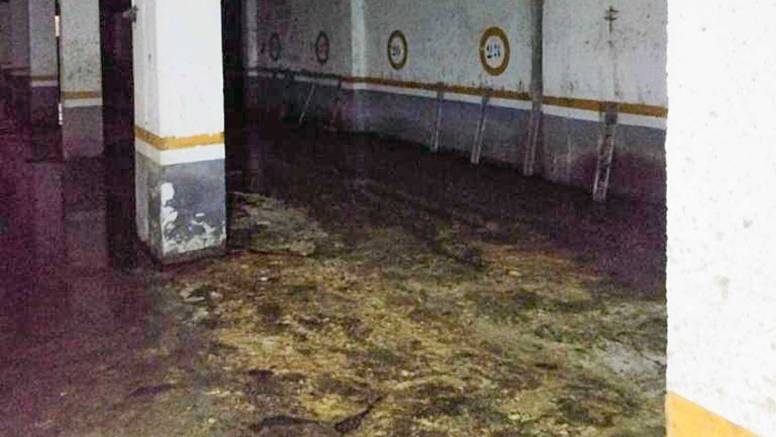 Los vecinos, desesperados ante la inundación de uno de los garajes con las aguas sucias de las viviendas, piden una solución urgente