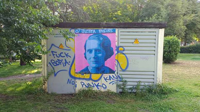 En la mañana del jueves 25 de mayo ha aparecido recuperado el mural de la Maestra Justa Freire que había sido vandalizado hace unos meses.