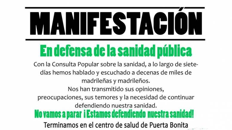 Mañana, 26 de abril, celebraremos una asamblea de vecinas y vecinos de los barrios y pueblos de Madrid, el espacio plural que agrupa a decenas de colectivos y asociaciones. Allí haremos un balance y hablaremos sobre los próximos pasos a seguir. La lucha continúa en defensa de una Sanidad cien por cien pública, universal y de calidad.