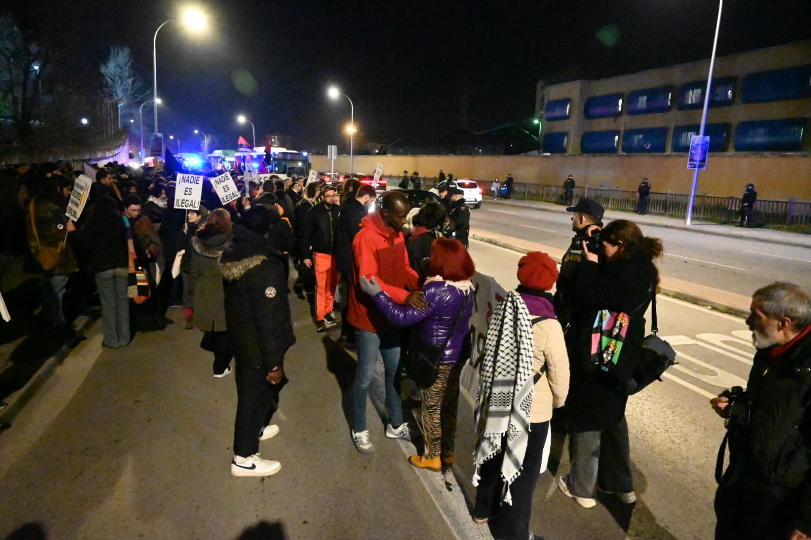 Algunas de las personas internas en el CIE saludaron a los manifestantes, en un ambiente de mutua comunicación y solidaridad.