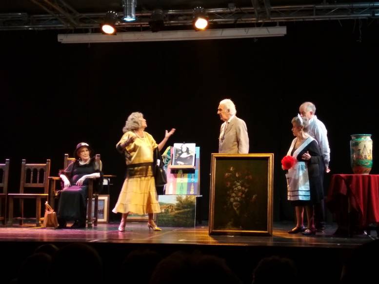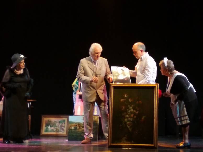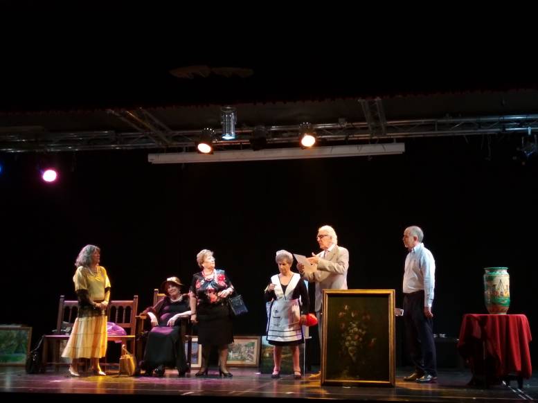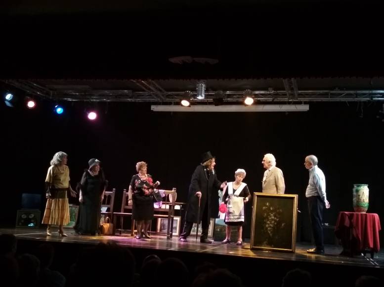 Sobre el escenario, el grupo de teatro del Centro Municipal de Mayores Maestro Alonso (Distrito Salamanca) representa una adaptación de El retrato de la Baronesa Von Peeifer, del dramaturgo español Rafael Mendizábal. Una comedia que despierta las carcajadas del público asistente y del comité que valorará esta obra enmarcada en el VIII Certamen de Teatro 'Mayores a Escena'. Este grupo es uno de los más de veinte que han estado pasando por el distrito de Carabanchel desde comienzos del mes de octubre a mostrar sus propuestas escénicas para el concurso.
