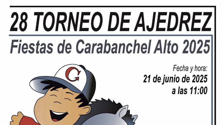 El próximo sábado 21 de junio, a partir de las 11:00, tendrá lugar el 28º Torneo de Ajedrez de Carabanchel Alto, en el marco de las fiestas del barrio.