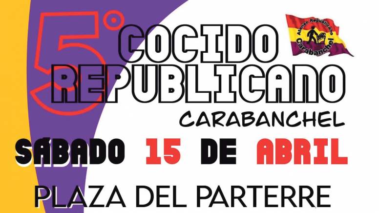 El sábado 15 de abril, El Ateneo Republicano de Carabanchel organiza su 5º Cocido Republicano en el Distrito. Será en la plaza del Parterre, y el bono para la comida cuesta 6 euros, existiendo también opción vegana.