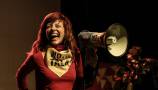 - La Reina del Megáfono, a La famosísima Violeta, que anima todas las protestas.