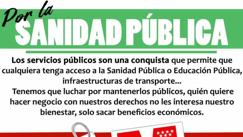 ¡Basta ya de destruir nuestra sanidad pública! Decimos alto y claro que defender la sanidad pública es defender nuestra salud, la de nuestras hijas e hijos y la de nuestros mayores. Sanidad 100% pública, de calidad y universal.
