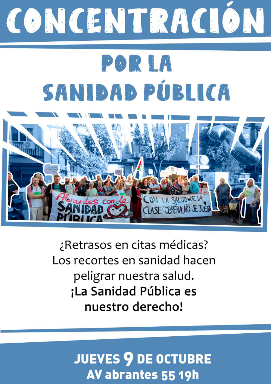 Jueves 9 de octubre, a las 19:00, concentración ante el Centro de Salud Abrantes