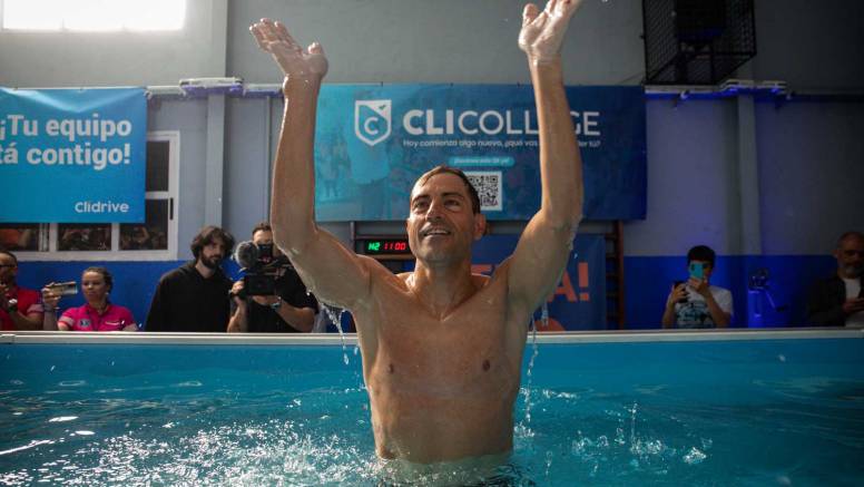 Pablo Fernández consigue su sexta marca mundial de natación en la presentación del programa de colaboración entre su nueva fundación, Clicollege, y el centro carabanchelero