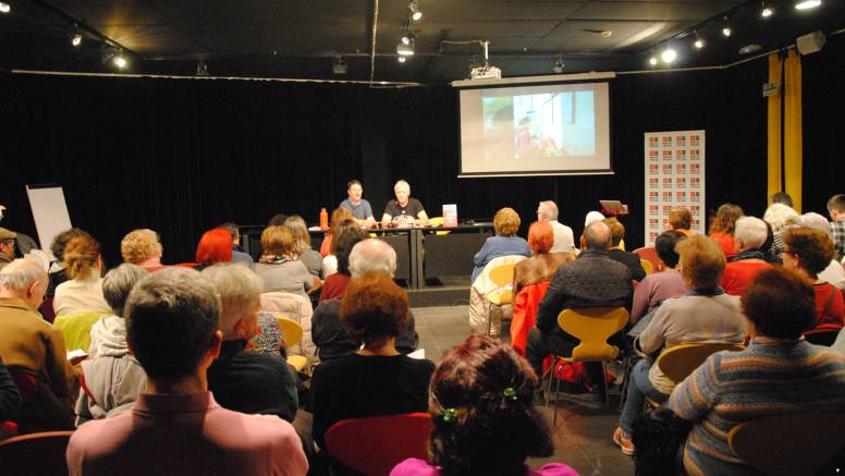 La conducción del acto corrió a cargo de Emiliano Malagón y Pedro Casas, responsables respectivamente de la maquetación del libro y la redacción de su texto general, quienes nos contaron las circunstancias de su edición e hicieron un resumen del recorrido de la asociación a lo largo de todos estos años y un repaso de los rasgos que han caracterizado su acción, entre los que sin duda ocupa un lugar importante su carácter luchador, pues los habitantes del cinturón obrero de Madrid sabemos por experiencia que nadie te regala nada y que es necesario luchar para conseguir las cosas, desde la llegada del metro al barrio hasta evitar que los parquímetros se instalen en sus calles.