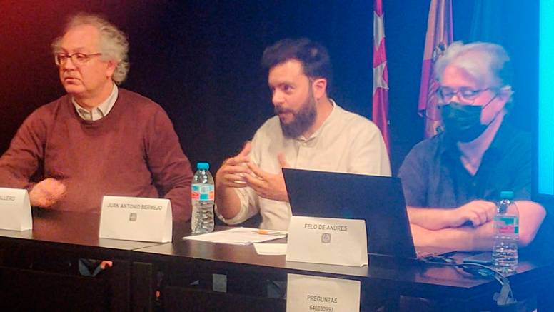 La conferencia se dividió en tres intervenciones. En primer lugar, Juan Antonio Bermejo, historiador y divulgador, realizó un recorrido histórico y territorial por la implantación humana y sus asentamientos en Madrid y Carabanchel. A continuación, Carlos Caballero, doctor en Geografía e Historia y presidente del CPAM, impartió una magistral clase sobre el valor patrimonial y arqueológico en Carabanchel. Y apoyándose en las justificaciones expuestas, Felo de Andrés, arquitecto y miembro de la Asociación de Vecinos de Carabanchel Alto, desarrolló la tercera parte, en la que presentó los argumentos que justifican el anteproyecto para un Centro de Interpretación dentro del entorno protegido de la ermita de Santa María la Antigua.