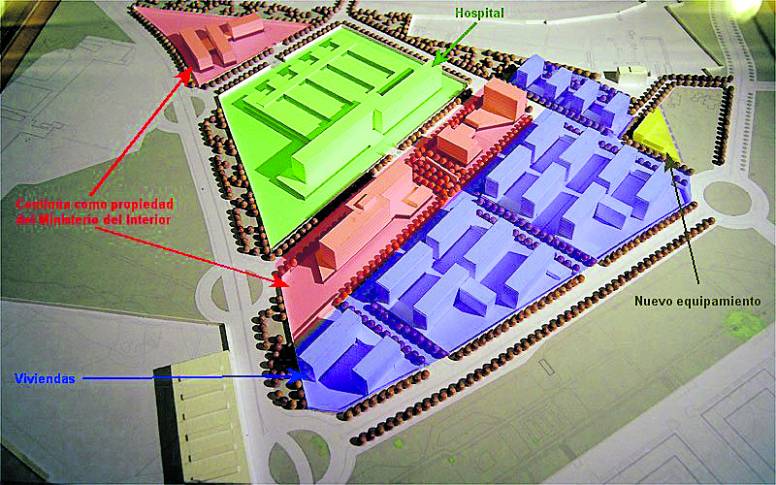 No se trataba de planes nuevos, tan solo que el propietario (95%) del terreno, el Ministerio del Interior, había solicitado iniciar los trámites para la urbanización y posterior construcción de los edificios allí programados desde hace 12 años. Recordamos que la presión vecinal, aunque no consiguió que todo el terreno fuera para equipamiento social, consiguió que se modificara en 2008 el plan de urbanismo reduciendo a la mitad la superficie destinada a pisos. En principio tan solo se dedica a equipamientos de uso público el hospital y un pequeño equipamiento básico local. El resto de equipamiento público se lo queda el Ministerio del Interior, para la comisaría, el actual CIE y dependencias de Instituciones Penitenciarias.