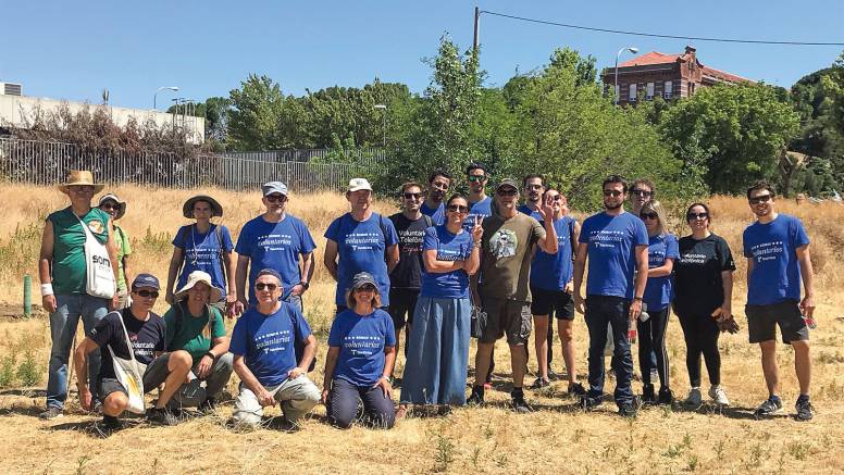 El 1 de julio, con motivo del Día del Voluntariado de Telefónica, más de 40 voluntarios de Telefónica y de la Mesa del Árbol de Carabanchel estuvieron desbrozando, saneando y regando en el arroyo de las Mimbreras.