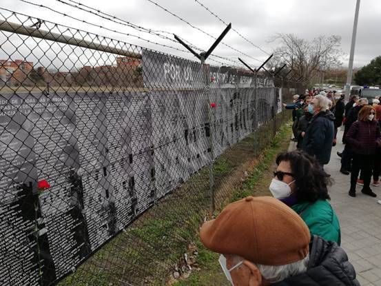 En la mañana de ayer, un centenar de personas convocadas por la Plataforma Ciudadana por el Centro de Memoria Cárcel de Carabanchel reinstalaron el Memorial Alternativo en la verja de los terrenos de la antigua cárcel. Este memorial consiste en paneles en los que enumeran más de 2.000 nombres de personas que estuvieron presas en la cárcel franquista de Carabanchel.