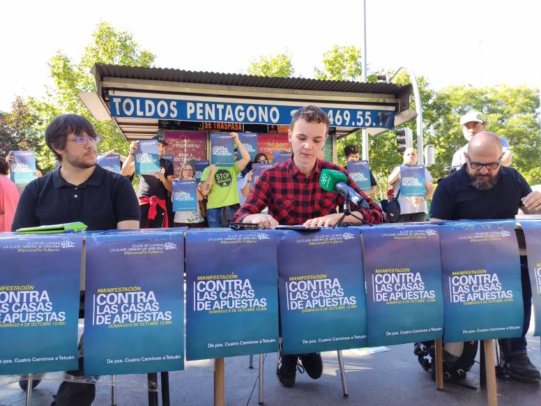Esta mañana ha tenido lugar en la Plaza de Oporto de Carabanchel una rueda prensa para anunciar la manifestación multitudinaria contra las casas de apuestas del próximo 6 de octubre. Estos locales, como ya hemos informado desde A Voces de Carabanchel, se han convertido en un plaga en los barrios obreros como Carabanchel.
