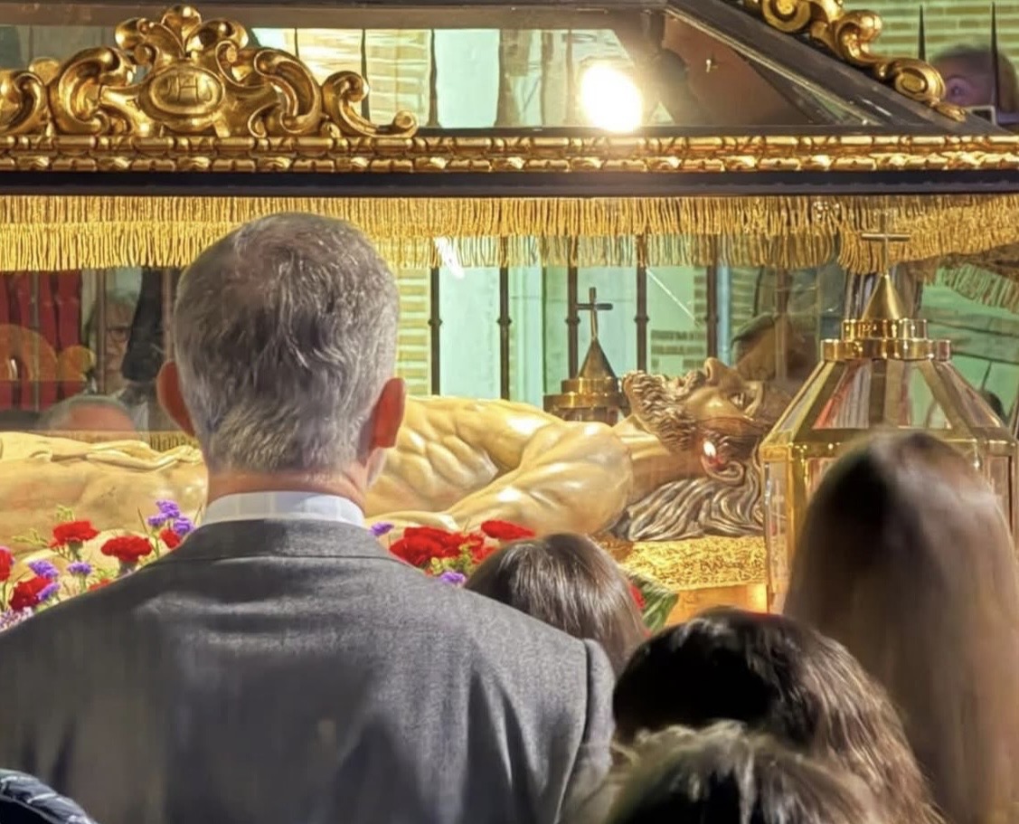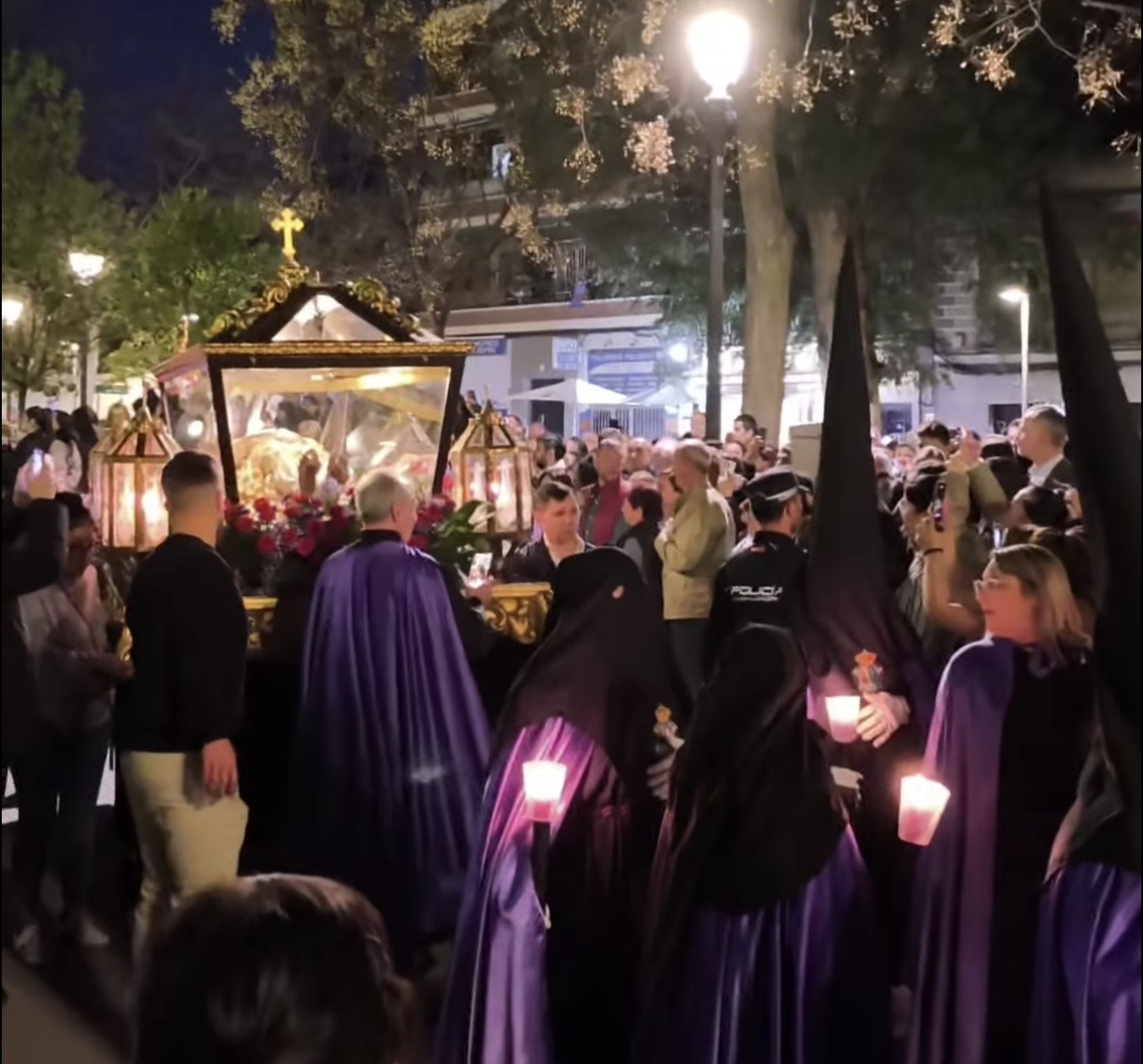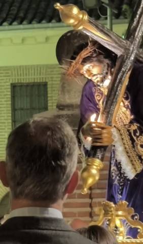 Los vecinos esperaban la salida del paso de Jesús Nazareno de la parroquia de San Sebastián Martín, ubicada en el número 1 de la plaza Carabanchel, al lado de la Junta Municipal, cuando minutos antes de la salida de la imagen, que era a las 21:00, llegó la familia real. Charlaron y se hicieron fotos con los vecinos, estando presente también el concejal del Distrito, Carlos Izquierdo.