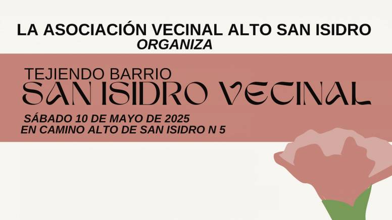 El próximo sábado 10 de mayo, la Asociación Vecinal Alto de San Isidro invita a toda aquella persona que quiera apuntarse a la celebración de la fiesta de San Isidro en el barrio.