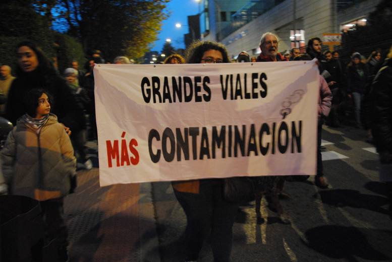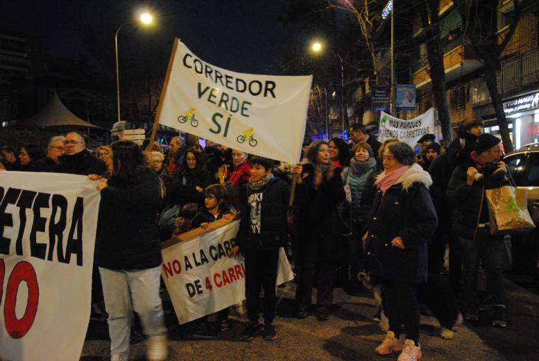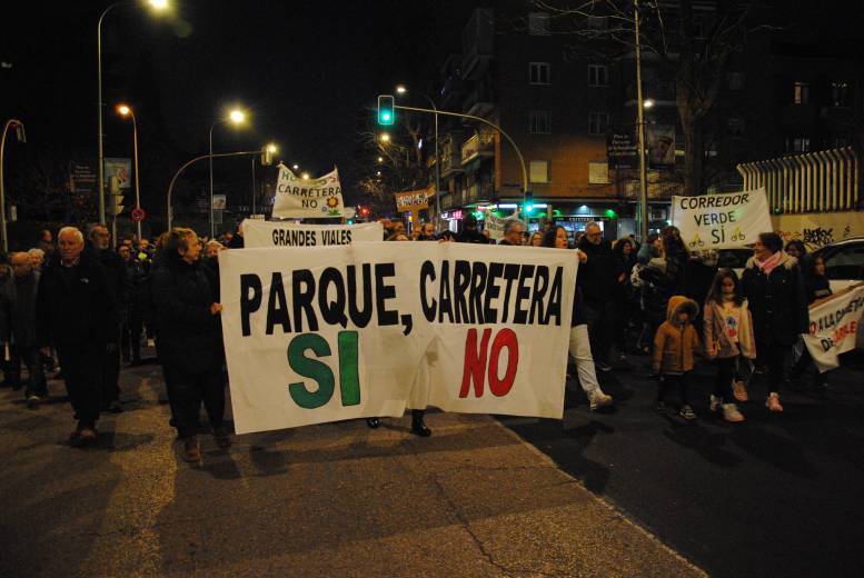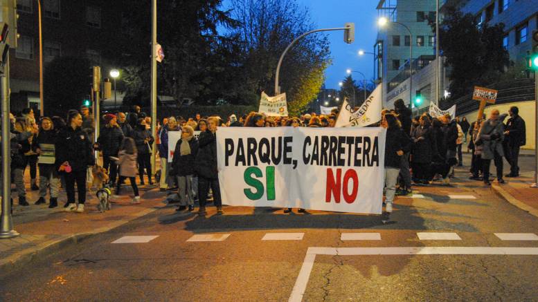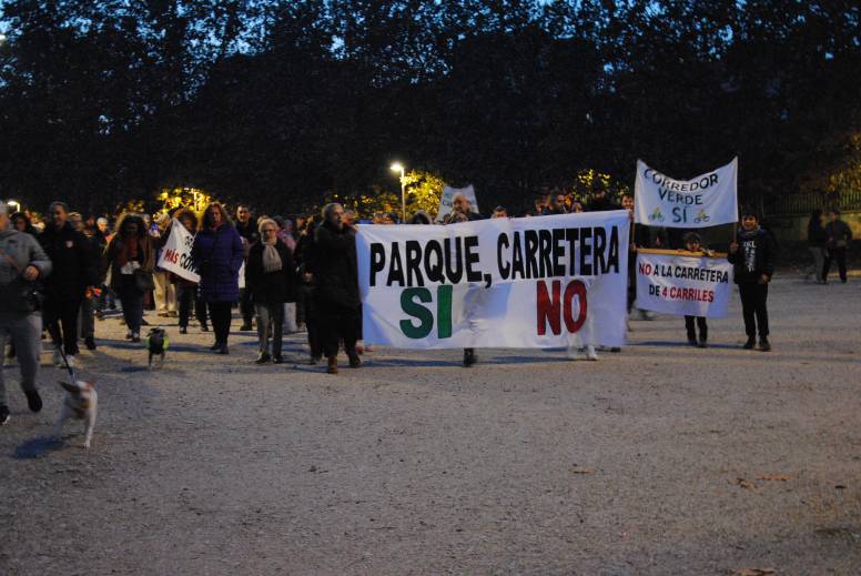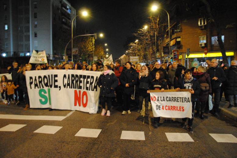Unas setecientas personas marcharon desde la boca de metro del barrio hasta la Fuente de los Patos al grito de ‘¡Parque sí, carretera no!’