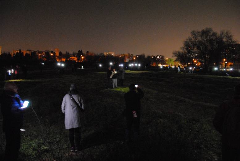 La manifestación transcurrió por la calle de Nuestra Señora de la Luz, torciendo por la avenida de Nuestra Señora de Fátima, que recorrió durante un buen trecho hasta girar por la calle del Pingüino y alcanzar el parque en la Fuente de los Patos. Una vez allí, y utilizando las linternas de sus móviles, los manifestantes se desplegaron y delimitaron la enorme rotonda de 60 metros de circunferencia que se pretende construir justo allí, en medio del parque. El efecto, impresionante, nos dio una idea clara de lo que puede ocurrir de seguir adelante el plan previsto. Finalmente, con la lectura del manifiesto, se dio por concluido el acto de protesta.