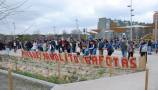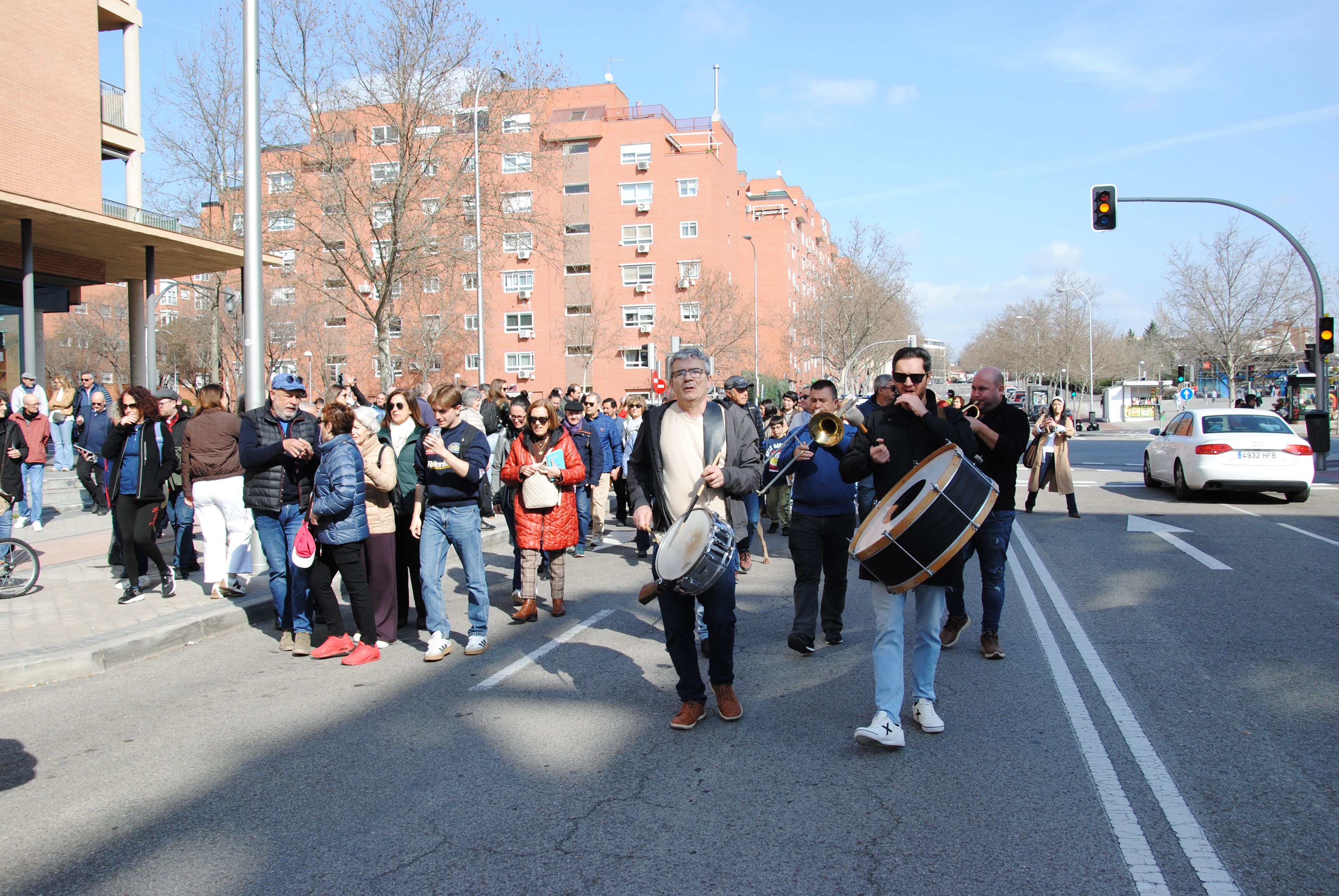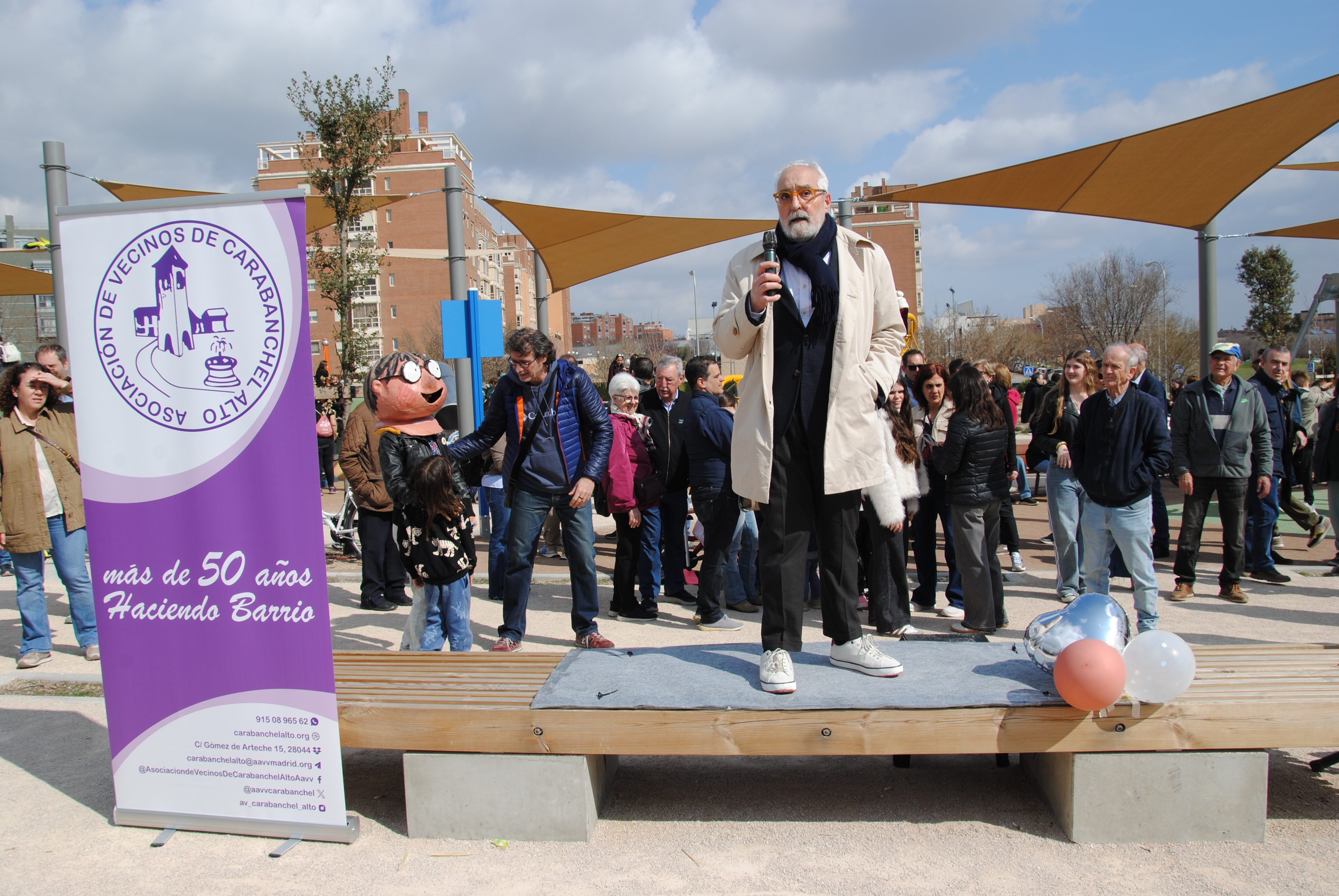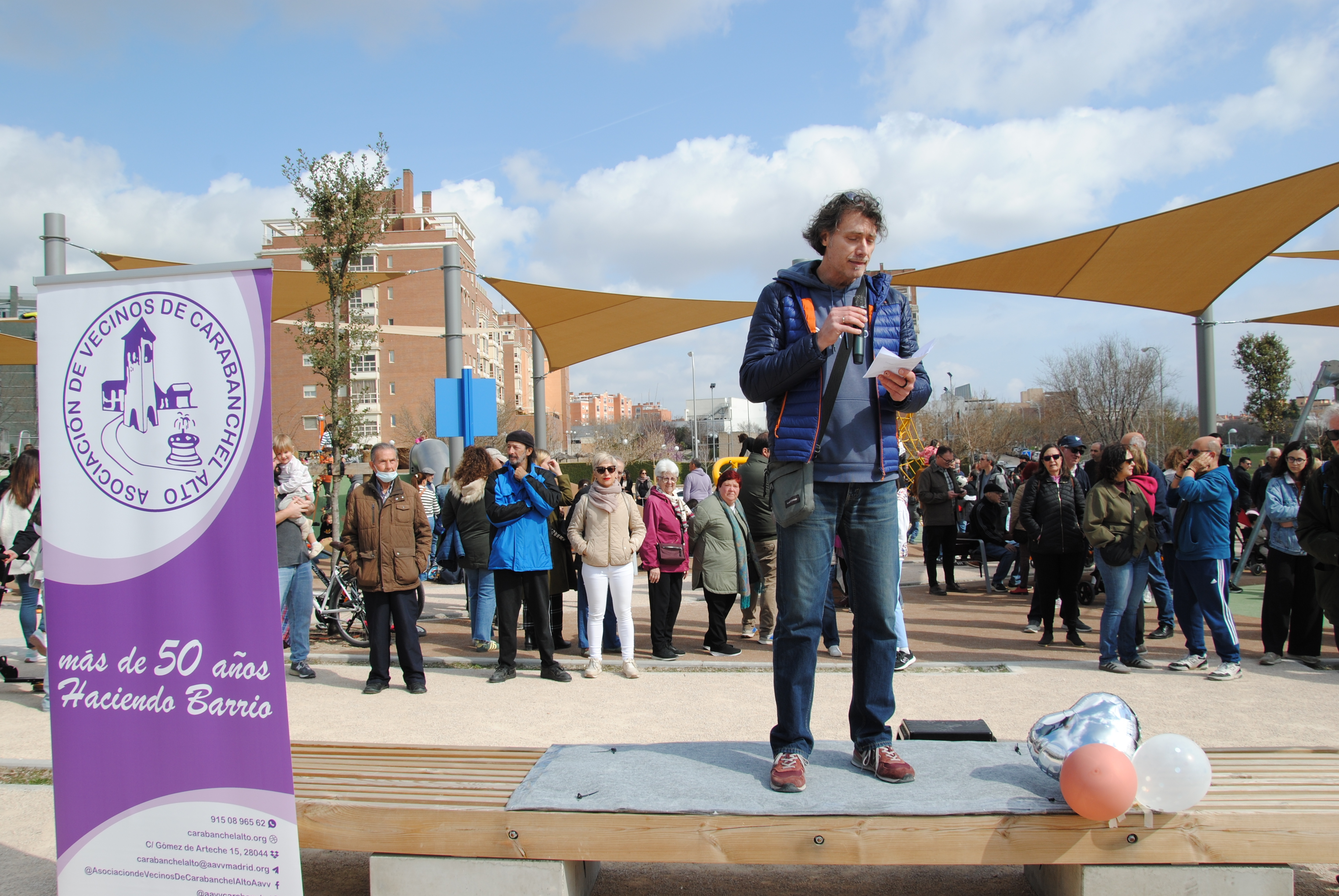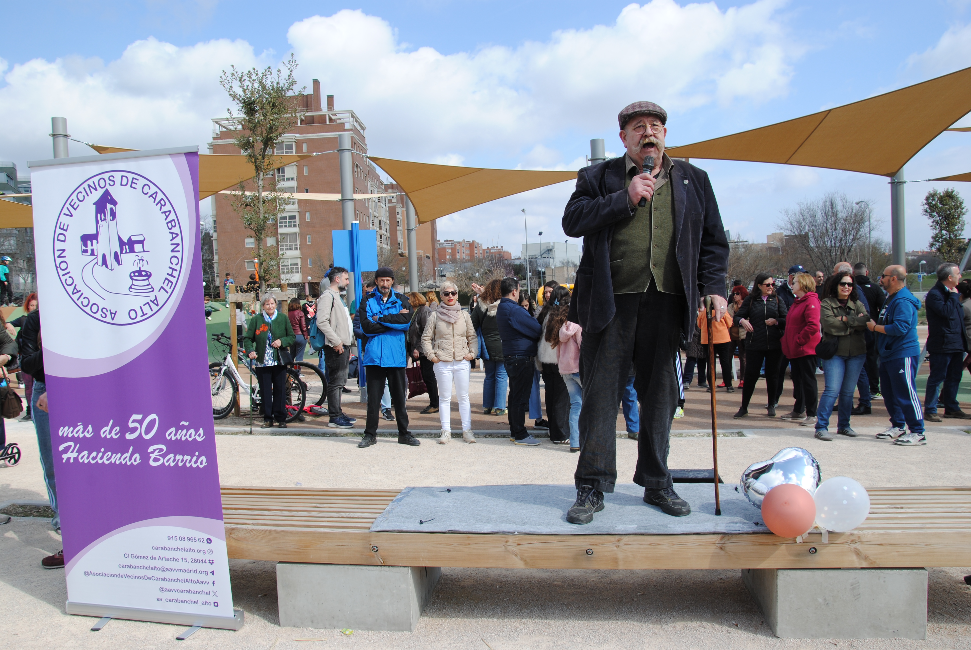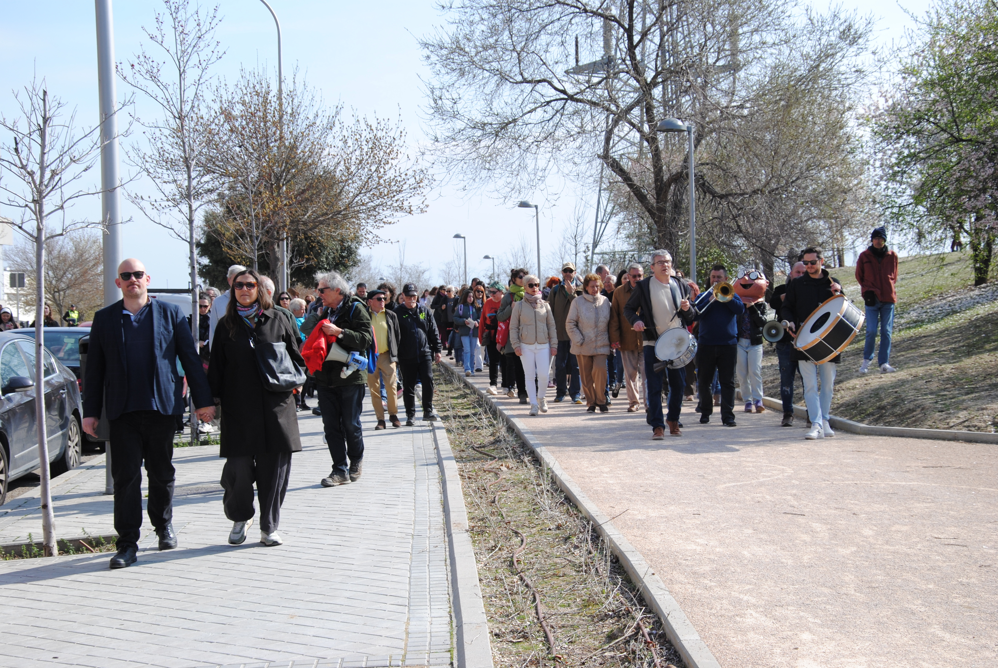 Había que celebrarlo, y por todo lo alto. Así que en la mañana del domingo 1 de marzo la asociación vecinal convocó a una cita a todo el barrio y a quien quisiese venir de los demás rincones de la ciudad, de la comunidad, del país o del mundo mundial. La quedada era a las 11:30 en el cruce de la calle de Salvador Allende con la avenida de la Peseta. A esa hora, en el lugar convenido, ya había más de un centenar de personas para iniciar la marcha hacia el parque precedidos por una charanga experimentada e incansable en su labor de dar ritmo a la comitiva.