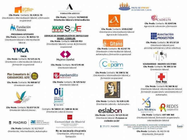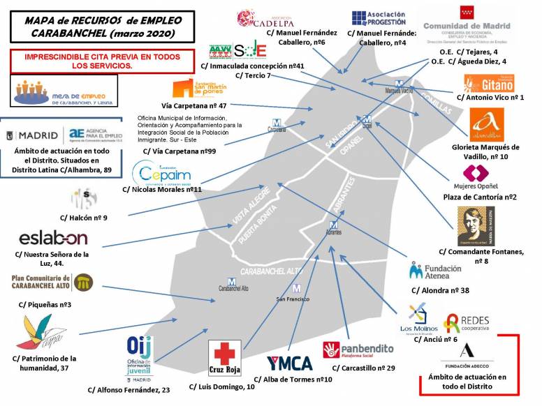 Además, se incluyen adjunto los Planos de recursos de Empleo de ambos distritos con las entidades que forman parte de la Mesa de Empleo de Carabanchel y Latina.