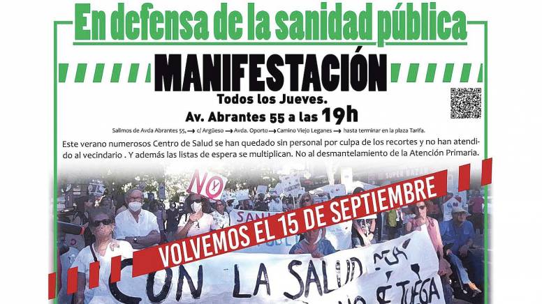 Tras el inevitable parón veraniego, vuelven al Distrito las movilizaciones vecinales en defensa de la sanidad pública. La próxima cita tendrá lugar el 15 de septiembre, con una manifestación que saldrá del Centro de Salud de Abrantes a las 19:00 y recorrerá las calles del barrio reclamando una asistencia sanitaria de calidad para todas las personas.