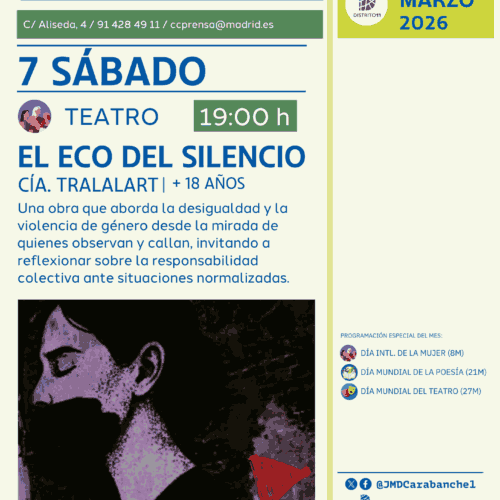La Junta Municipal del Distrito de Carabanchel ha organizado una programación especial en sus centros culturales con motivo del Día de la Mujer que se celebra el domingo, 8 de marzo. Las actividades propuestas incluyen obras de teatro y cuentos para concienciar y acercarse al público de todas las edades.