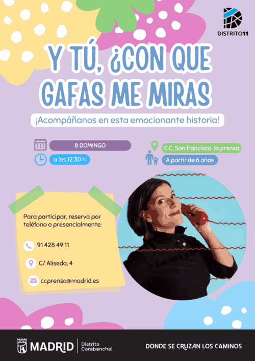 El domingo, coincidiendo con el Día de la Mujer, el Centro Cultural San Francisco La Prensa acoge una sesión de cuentos bajo el título ‘Y tú ¿con qué gafas me miras?’ de Margarito y Cía. Está dirigido al público a partir de 6 años y busca concienciar y visibilizar la necesidad de avanzar hacia la igualdad y reivindicar la superación de las mujeres en la sociedad que establece límites y roles. Será a las 12:30 h.