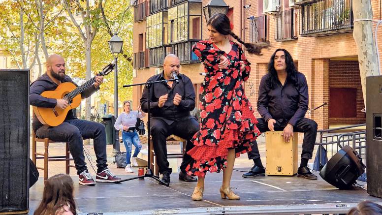 El colofón se puso a las 13:15, con el “plato fuerte” del evento: flamenco de genuino “sonido Caño Roto” con el cantaor David Jiménez, la bailaora Atenea del Toro y las guitarras de Raúl Jiménez y Jesús Jiménez. Todos con un alto nivel que hizo las delicias de los asistentes, prolongándose la fiesta más allá de las tres de la tarde.