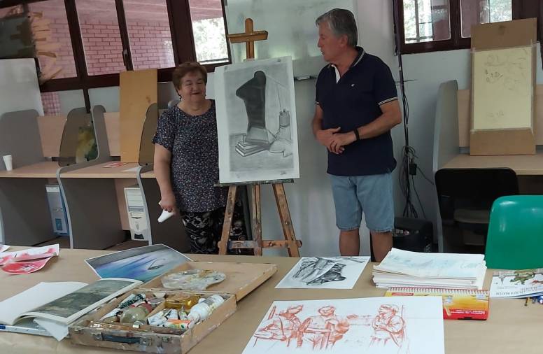 Este taller de pintura abre su espacio a personas del barrio, sepan o no pintar o dibujar, pues funciona como un intercambio de conocimientos. “Cada uno desarrolla la técnica que más le motiva o le interesa conocer”, reconoce Begoña, una de las participantes del taller. “Y entre todos nos ayudamos a mejorar”. Además, solo se pagan 5 euros al mes en concepto de gastos para la asociación, por lo que, realmente, el taller es grauito.