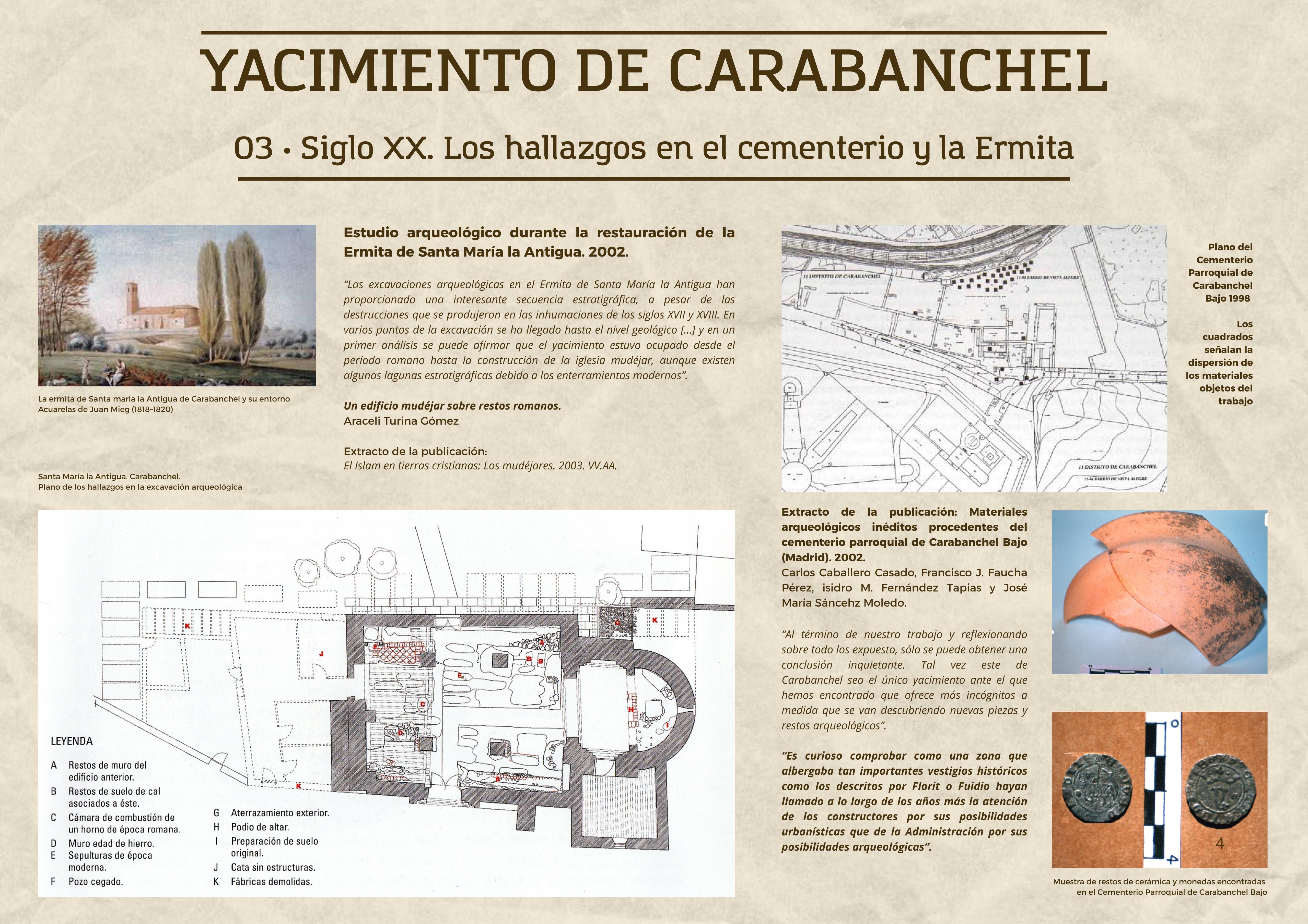 A principios del siglo XX, el arqueólogo J.M. Florit documentó una dispersión de restos que incluía cerámica, estructuras y objetos metálicos. Durante las obras del metro y la construcción de la cárcel de Carabanchel se siguieron encontrando vestigios, pero la mayoría fueron destruidos o almacenados sin estudio.
