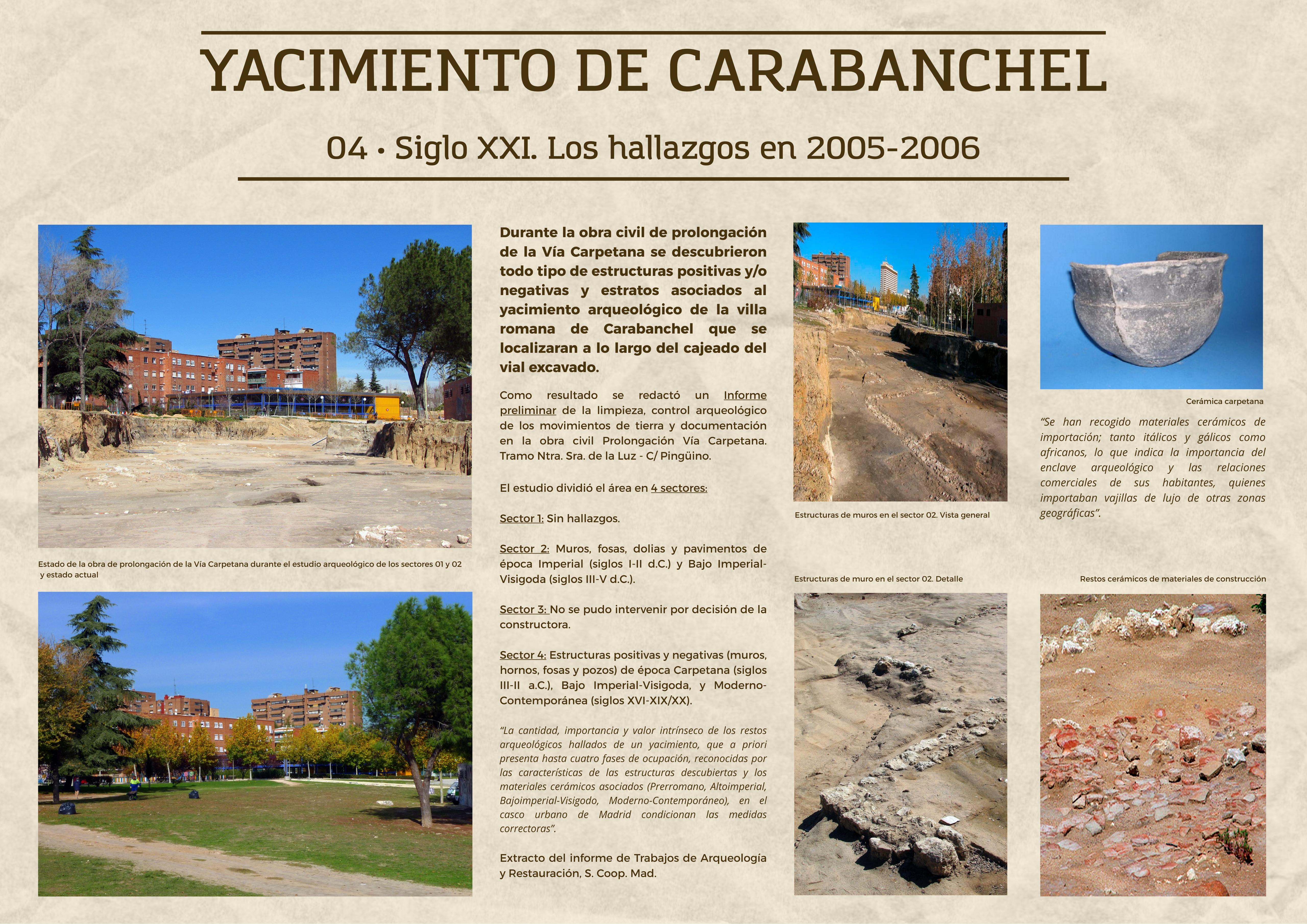 El 20 de septiembre se ha expuesto por primera vez la muestra sobre la historia del yacimiento de Carabanchel, desde su descubrimiento hasta la actualidad. Esta exposición itinerante continuará su recorrido por espacios culturales y vecinales