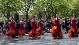 Al sol y al aire libre se inauguraba el certamen el pasado domingo, 28 de abril, con el Real Conservatorio Profesional de Danza Marienmma. El Espacio Río (Puente de Toledo) se llenó de propuestas de color. Danza española, moderna y también con un punto castizo dio el paso al flashmob Los hombres también bailan.