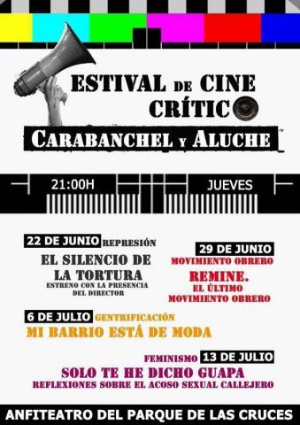 Carabanchel, junio de 2017. Necesitábamos seguir organizando actividades en el Parque de las Cruces. Durante trece años, el anfiteatro de este lago carabanchelero acogió el Festik, festival autogestionado que se convirtió en todo un referente del sur de Madrid. Hoy, presentamos un nuevo festival, esta vez de cine crítico y con el que pretendemos también llegar a todas aquellas personas que quieran conocer un poco más en profundidad el complejo mundo que nos rodea. Tras autogestionarnos pantalla y proyector, el cine de verano estaba servido. Solo faltaba elegir las áreas a abordar y buscar los documentales. Esta primera edición se pone en marcha con cuatro temáticas muy diferenciadas: represión, movimiento obrero, gentrificación y feminismo.La primera proyección tendrá lugar el jueves, 22 de junio y lo haremos por todo lo alto con el estreno de “El silencio de la tortura”, un documental sobre las vulneraciones a los derechos humanos, practicadas por las distintas Fuerzas y Cuerpos de Seguridad del Estado. Producido por la productora audiovisual alternativa Dokus Aborigen, contaremos con la presencia del director que desde las 21:00 horas nos contará el porqué de este interesante documental que comenzará a proyectarse en torno a las 22:00 horas.