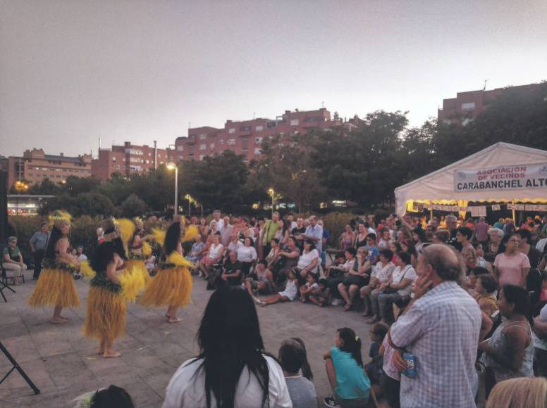 A partir de las 20:45 horas, el Grupo de Mujeres de Carabanchel Alto organiza una muestra de Sevillanas en el parque Salvador Allende y, posteriormente, la Orquesta Dame Veneno interpretará temas de pop, rumba y rock.