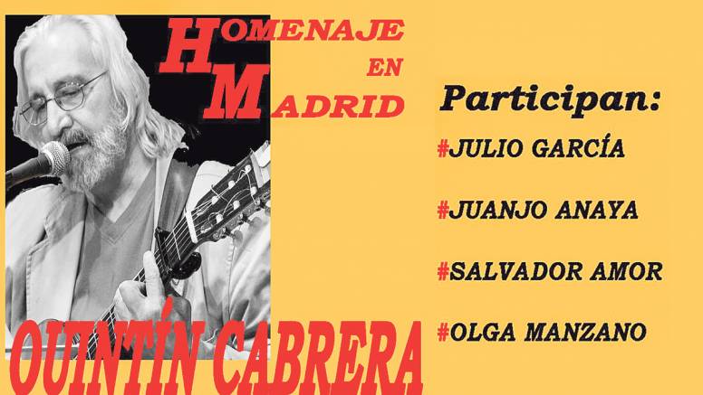 Quintín Cabrera (1944-2009), “cantor”, músico y compositor, nació en Montevideo (Uruguay). En 1968 se trasladó a vivir a Barcelona, y en 1991 a Madrid. Aunque siempre ha ejercido de uruguayo, su carácter solidario y progresista le hizo participar activamente en la escena política, social y artística española grabando incluso canciones en catalán. En los años finales de la dictadura española hizo suyas las señas de identidad de buena parte de la izquierda, y fue una de las grandes voces de la canción protesta, sin olvidar sus raíces en el canto popular de Uruguay.