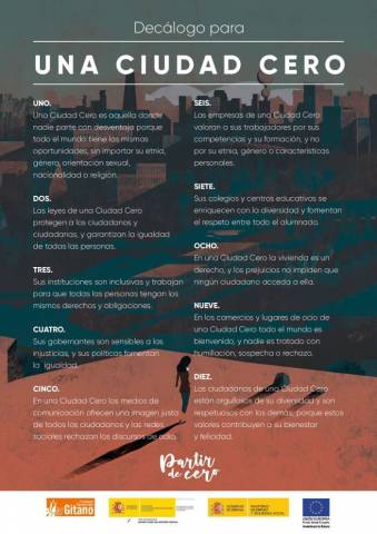 La Fundación Secretariado Gitano, además, busca el apoyo de ciudadanos, instituciones, empresas y organizaciones. Para ello, han presentado el Decálogo para una Ciudad Cero, un manifiesto al que todo el mundo se puede unir en la web www.partirdecero.org para, entre todos, conseguir construir una sociedad en la que nadie parta con desventaja. Esta campaña, presentada en Madrid, se difundirá en los próximos meses en 55 ciudades españolas a través de las sedes de la Fundación Secretariado Gitano en toda España.