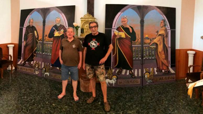 El 23 de agosto de 2021 se instalaron los evangelistas. Y no faltaron anécdotas: “Antes de subir los cuadros, nos hicimos fotos con ellos —recuerda Enrique—. Ladislao, en pleno verano, salió en pantalón corto, bromeando: ‘¡Ni se te ocurra sacar al Cristo detrás, que estoy en bermudas!’. Era un cura de los buenos: cercano, sabio, con sentido del humor. Uno de esos que dejan huella sin levantar la voz”.