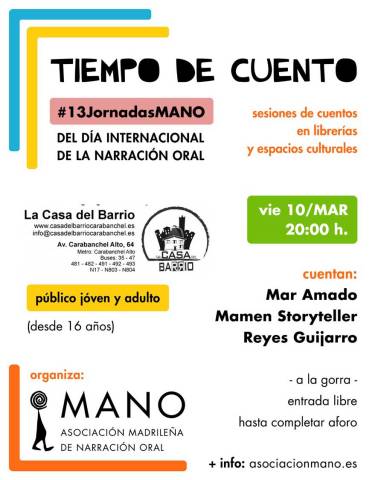 - Viernes 10, 20:00. Tiempo de cuentos.