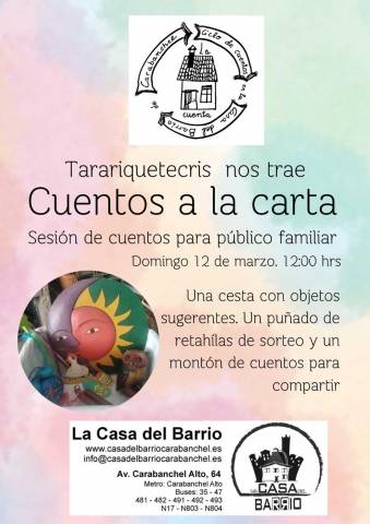 - Domingo 12, 12:00. Cuentacuentos a la carta.