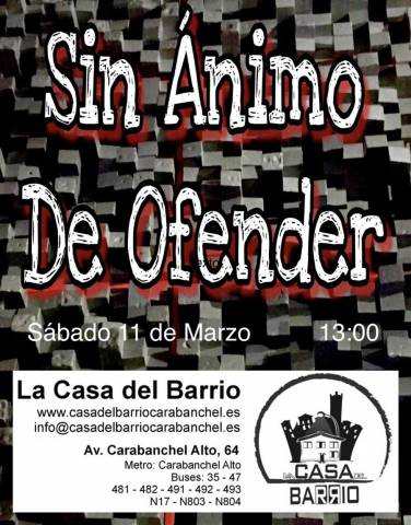 - Sábado 11, 13:00. Concierto Sin Ánimo de Ofender.