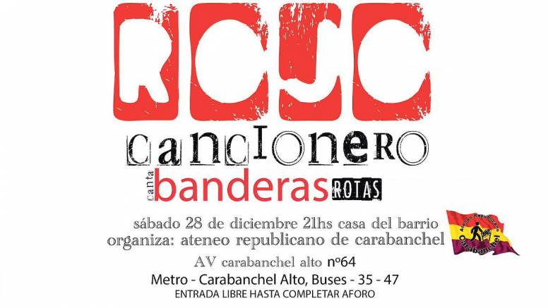 “Banderas Rotas” es su primer repertorio, con el que comenzaron este proyecto, ahí por mayo de 2010. Lo recordarán el sábado 28 de diciembre en la Casa del Barrio. Organiza, como siempre, el Ateneo Republicano de Carabanchel.