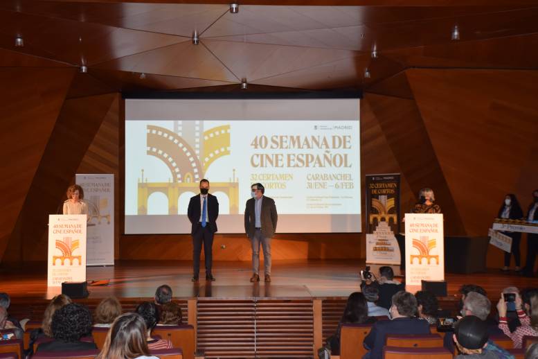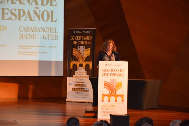 El domingo 6 de febrero se celebró la gala de clausura de la 40 Semana de Cine Español de Carabanchel y la entrega de premios del 32 certamen de cortos cinematográficos. El Auditorio Caja de Música del Palacio de Cibeles ha vuelto a ser el punto de encuentro para el evento, que ha sido presentado de nuevo por Yolanda Flores. La periodista inauguró el acto agradeciendo todo el trabajo realizado por diferentes personas y asociaciones para poder llevar a cabo esta Semana de Cine. Al comienzo de la gala se proyectó un video que resumía toda esa semana cultural y cinematográfica, con imágenes que mostraban la gala de inauguración y las diferentes proyecciones de películas en los centros culturales. En el vídeo se apreciaba la alta participación que ha habido por parte de los vecinos, con largas colas de espera para ver los estrenos. Además, Yolanda hizo una mención especial a los centros culturales que han acogido la proyección de estas películas, destacando su labor como difusores del séptimo arte.