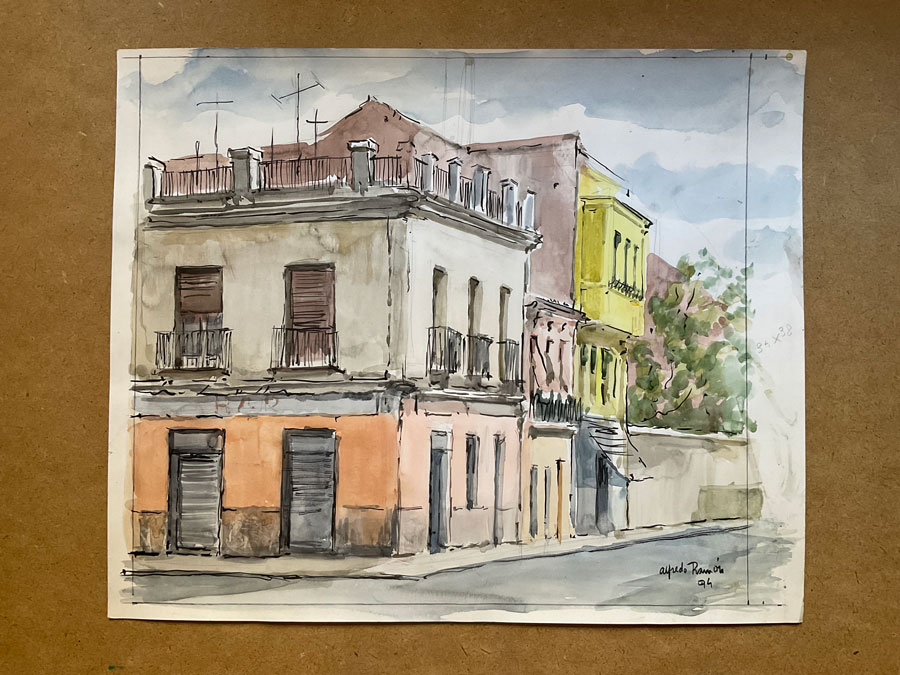 Alfredo Ramón se graduó poco después en la Escuela Superior de Bellas Artes con título de pintor y profesor de arte. Artista prolífico, multitud de obras suyas se encuentran en colecciones permanentes en España y el extranjero. A lo largo de su carrera recibió multitud de premios y honores, realizó una lista larguísima de exposiciones por todo el mundo y compaginó durante toda su vida la pintura con la labor docente. Uno de los temas más destacados en su obra es Madrid, su ciudad, en la que sentía predilección por sus rincones (bastantes de ellos, por cierto, de Carabanchel), sus tipos humanos, los pequeños negocios tradicionales, las actividades profesionales, las costumbres… que plasmaba con su característico realismo poético y onírico, destacando una certera mirada que le hacía descubrir todo un mundo de matices donde el común de los mortales solo veía una mota de polvo o una mancha de humedad.