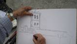 Alfredo trabajaba mucho y duro en casa preparando los bocetos en papel, y ensayaba pintando sobre las paredes de la vivienda, dibujando las figuras de los evangelistas a gran tamaño, mucho más grandes que el natural. Luego venía a Carabanchel y había que preparar la superficie, pues no se puede pintar directamente sobre la piedra o el ladrillo. Había que cubrirlo con el enfoscado, dejando la superficie lisa y limpia, y luego el enlucido, con un yeso más fino. Si hay dinero, se aplica también un poco de polvo de mármol. Luego, con la ayuda de los obreros, pegaba a la cúpula los bocetos que había hecho en papel, y una vez colocados procedía al estarcido: con un instrumento punzante hacía estampaciones sobre la superficie de la plantilla, dando una especie de efecto de calco. Luego quitaba la plantilla y dibujaba, pintando sobre la pared húmeda. Hay que trabajar rápido, porque a medida que se va secando la pared la pintura va fraguando con ella, y tienes que calcular bien la superficie que vas a poder terminar en una jornada de trabajo. Hay además otra dificultad: los colores cambian según se seca la pared con la pintura, se van aclarando, así que no sabes exactamente cómo va a quedar y necesitas hacer muchas pruebas, porque una vez secado no hay remedio.