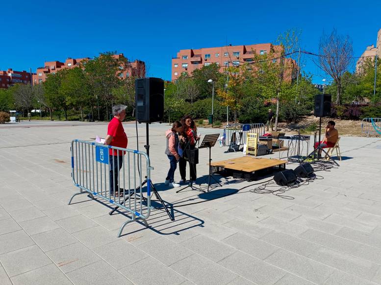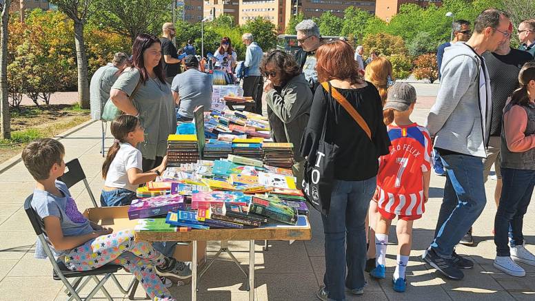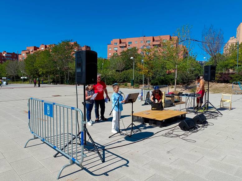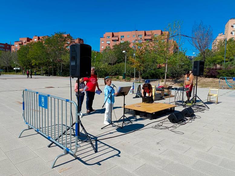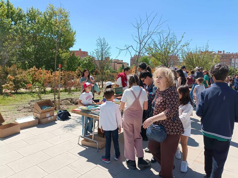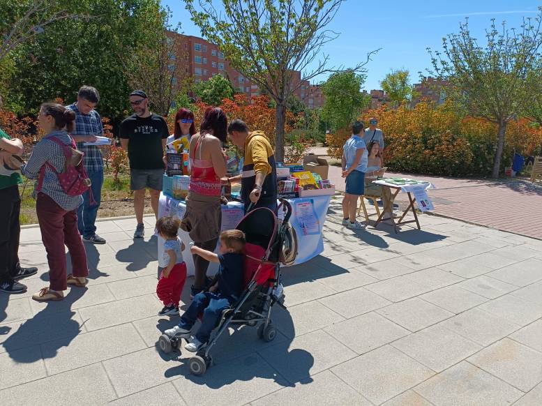 Mientras estas actividades tenían lugar, las familias podían intercambiar libros de la AVCA, realizar actividades en la mesa taller medioambiental del Huerto Pinar o en la mesa literaria y plástica del artista Quino de Karawancine.